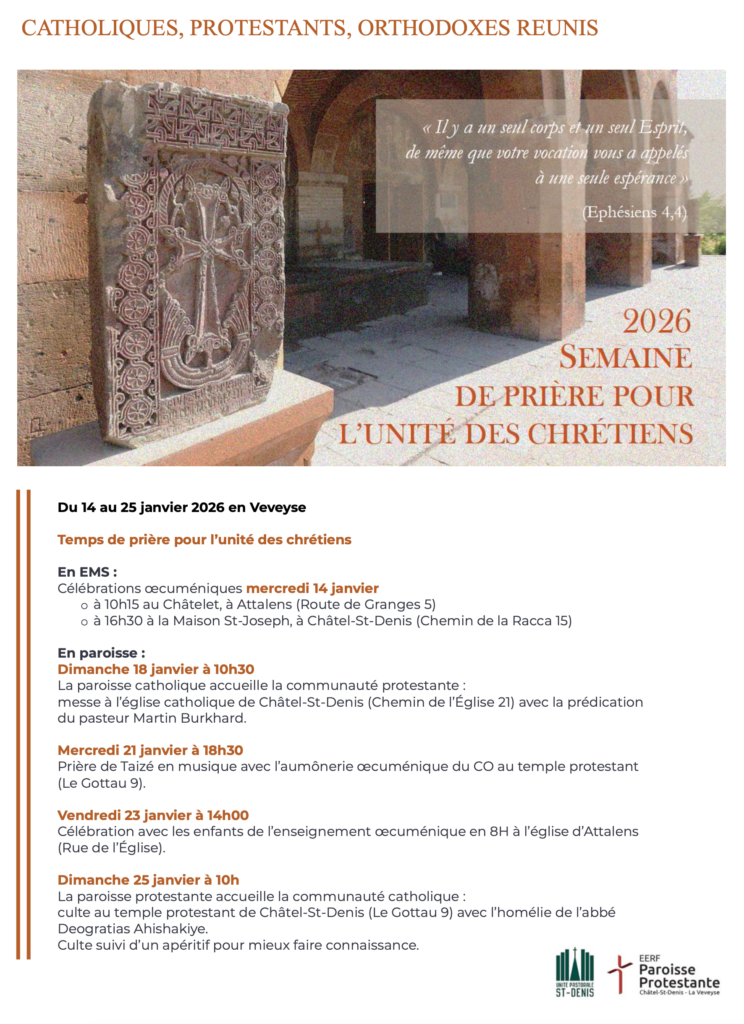 La paroisse protestante de Châtel-St-Denis – la Veveyse couvre l’ensemble des villages du district de la Veveyse. Une paroisse ouverte aux familles et offrant de nombreux groupes pour les différents âges.