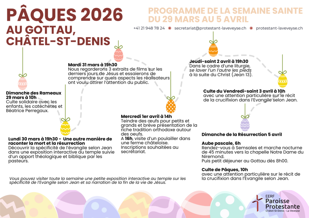 La paroisse protestante de Châtel-St-Denis – la Veveyse couvre l’ensemble des villages du district de la Veveyse. Une paroisse ouverte aux familles et offrant de nombreux groupes pour les différents âges.