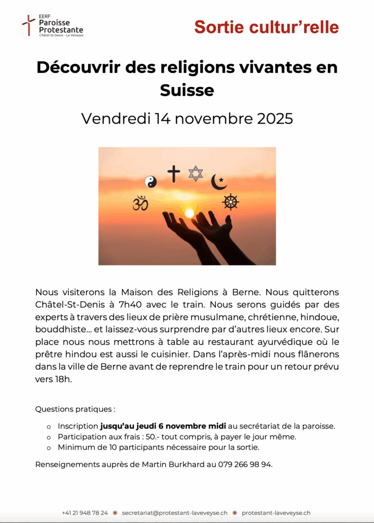 La paroisse protestante de Châtel-St-Denis – la Veveyse couvre l’ensemble des villages du district de la Veveyse. Une paroisse ouverte aux familles et offrant de nombreux groupes pour les différents âges.